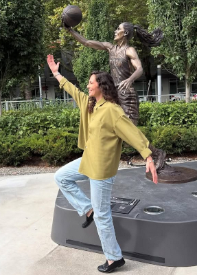 Ex-Basketball-Star Sue Bird wurde als erste Spielerin der US-Liga WNBA mit einer Statue geehrt: Die Bronzeskulptur steht vor dem Stadion ihres langjährigen Clubs Seattle Storm: Die 44-Jährige, fünffache Olympiasiegerin und vierfache Weltmeisterin, spielte dort während ihrer gesamten 21-jährigen Karriere, die sie 2022 beendete. Inzwischen ist sie Managing Director des Nationalteams und hält Anteile an ihrem alten Team und dem New Yorker Fußballclub Gotham FC, betreibt mit ihrer Dauerverlobten, Ex-Fußballstar Megan Rapinoe (K-Word #377) eine Produktionsfirma und einen Podcast, die beide A Touch More heißen.