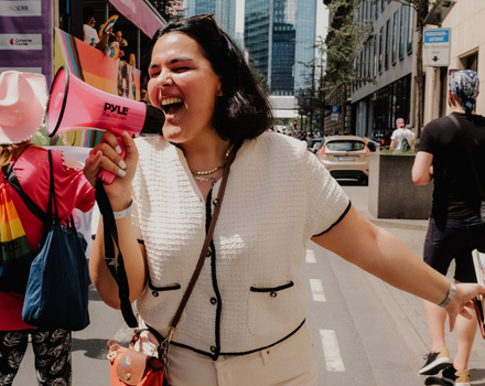 Die lesbische Mitarbeiterin der globalen Wirtschaftskanzlei Freshfields wollte nicht hinnehmen, dass führende Kanzleien mit Verweis auf knappe Budgets bei Pride-Paraden fehlen. „Ey, dann lasst uns doch unsere Budgets zusammentun und das gemeinsam machen!“ Sie vernetzte erstmals unterschiedliche Kanzleien, die zwar wirtschaftliche Konkurrenten sind, nun aber an einem Strang zogen. Das Ergebnis: ein gemeinsamer Truck auf dem CSD Frankfurt 2025. „Wir machen das dieses Jahr wieder – diesmal in Frankfurt und München“, erzählt sie L-MAG. Denn gemeinsam ließen sich Ziele besser und schneller erreichen: „Ich wünsche mir, dass wir den Mut auch in schwierigen Zeiten nicht verlieren und laut, sichtbar und intersektional für eine bessere Zukunft kämpfen.“